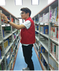 7月5日志愿者们照常展开了工作。虽然在这里做工作是那么简单,但是这份简单工作后面的责任却十分重大,你在这里每一个工作都会影响到读者们的读书。所以必须要认真对待这份工作。如果那里的书的顺序乱了,读者们会遇到麻烦,浪费他们的时间,所以志愿者们个个都十分严谨负责。