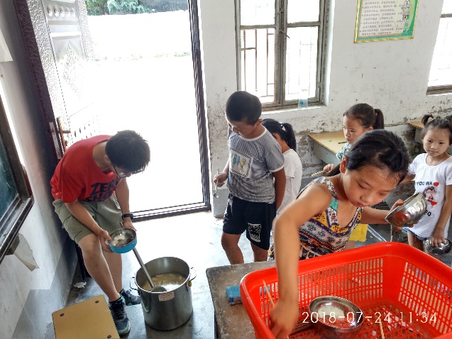 不出所料,160个孩子的威力不容小觑,一天的授课任务完成后,队员们纷纷表示身体“透支”,加之很多队员基本听不懂孩子们所说的方言,更是使得每日工作难上加难,好在队员积极自我调整,队内也视情况对每日事务进行细化分配,对从生活到工作上的各项事务进行具体化分工,避免了因混乱局面造成的额外工作。