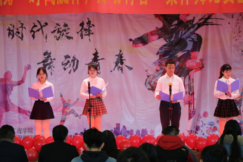在主持人董奕霄与李德晶的宣布下,比赛正式开始。首先进行是由17级农水一班的同学们带来的舞蹈表演,他们组成的《失恋阵线联盟》完美地演绎了1978年到1990年中国改革开放初期人们的生活风貌,用自己的舞姿向改革开放初期的老一辈致敬。