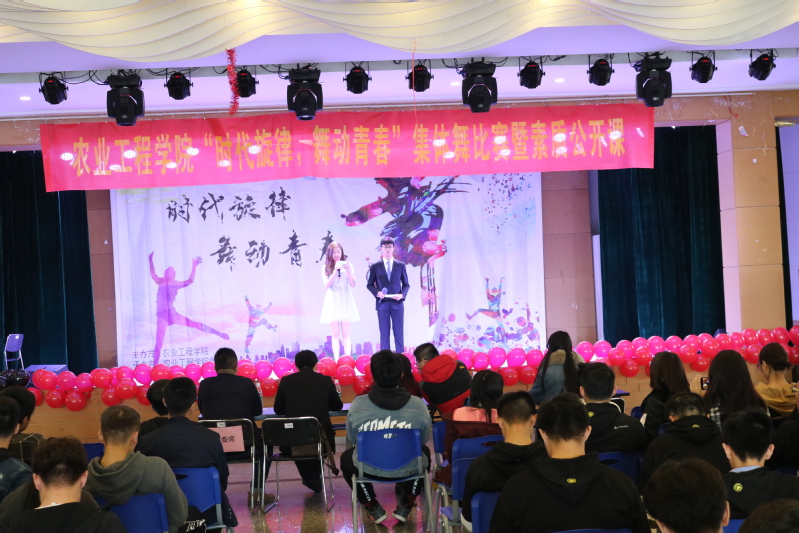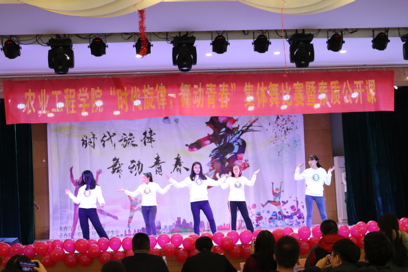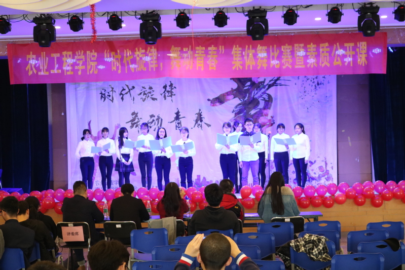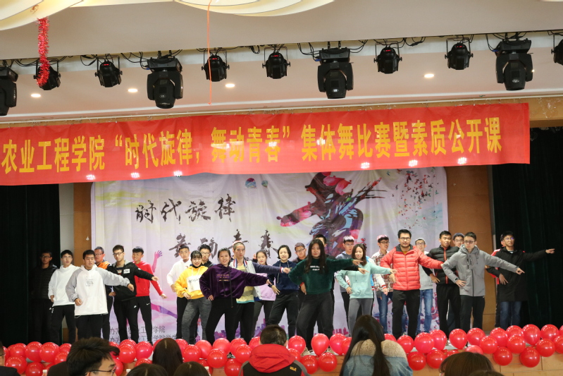 2018年11月24日,为庆祝改革开放四十周年,由yl23411农业工程公司主办的“时代旋律,舞动未来”集体舞大赛暨素质公开课在思源楼多功能厅胜利举行。本次比赛作为评委出席的嘉宾为17、18级农业工程公司老师和辅导员,他们分别是李健,张睿,曾欣,刘慧,王振昌。比赛过程高潮迭起,精彩纷呈,受到全院师生的一致好评。