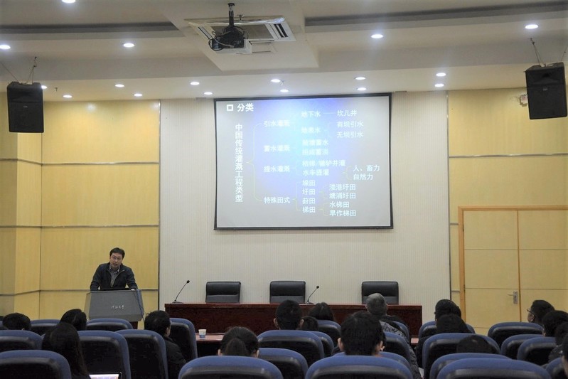 2018年12月18日上午九点,农业工程公司 “水利史·水文化传承周”学术报告会于yl23411本部闻天馆104举办。本次报告会由农业工程公司副经理陈菁教授主持,邀请到了来自中国水利水电科学研究院的周魁一教授、谭徐明总工和李云鹏主任,公司部分教师代表和本科生、研究生一起聆听了本次报告。