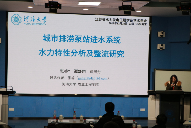 会议围绕“水力机械与系统仿真分析”、“水力机械系统振动及运行稳定性”、“水力机械中的空化、空蚀与磨蚀”、“水能、风能及海洋能开发利用新技术”、“水力机械系统优化及其信息化”、“工程应用中的流体动力学研究”等主题内容开展了交流研讨。江苏省水力发电工程学会理事长朱跃龙教授、南水北调东线江苏水源有限责任公司冯旭松副总经理、扬州大学成立教授、江苏大学康灿教授、yl23411郑源教授、江苏大学裴吉副研究员、江苏航天水力设备有限公司邵春兵副总经理以及江苏省水力发电工程学会水力机械与系统专业委员会主任刘超教授分别做了《南水北调东线工程泵站(群)优化调度关键技术研究》、《南水北调大型低扬程高性能泵站关键技术研究与应用》、《沿江双向流道轴流泵站水力振动流动机理及控制研究》、《阻力型水动力转轮的流体力学问题》、《大型泵站水利信息化与机组高效稳定研究》、《水力机械内流特性及智能优化方法研究》、《新工艺、新材料、新技术在大型水利泵上的应用》、《轴流泵系统研究进展和相关问题》的主题报告。我院张睿副教授指导的19级研究生谭舒翊做了题为《城市排涝泵站进水系统水力特性分析及整流研究》的学术报告,受到了与会专家的一致好评,并荣获由江苏省水力发电工程学会颁发的奖励证书。