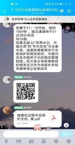2020年3月22日晚,由农工院科协主办的农情大讲堂之学术讲座在QQ群以直播的方式如期举行。yl23411陈菁经理受邀为全校的同学们进行了题为《城镇化过程中的水系保护》的学术讲座。讲座由农工院19级芦治宇同学主持。