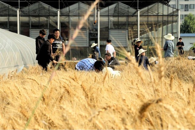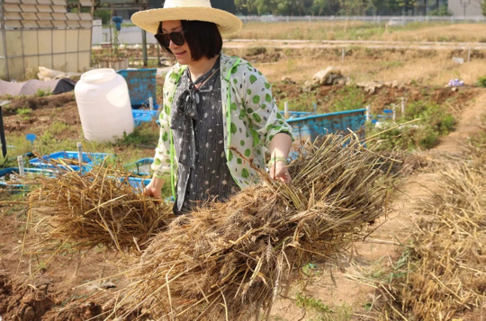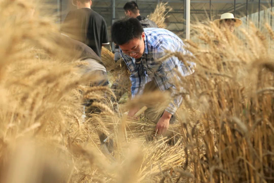 割麦体验赛正式开始,各组成员进入麦田抢收麦子。同学们经过小心翼翼地尝试后,很快进入了有条不紊的收割状态。现场气氛紧张活跃,不少未能参加比赛的同学都忍不住进入麦田进行体验。比赛结束后,国洪梅老师对各组收割麦田的表现进行点评,她对同学们劳动实践的热情表示了肯定。徐俊增副经理对此次活动进行了总结,希望同学们能够通过劳动实践亲近土地、熟悉土地、热爱土地,为以后深入的专业知识学习打下良好的实践基础。