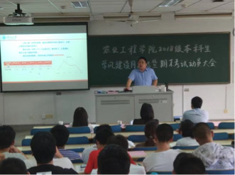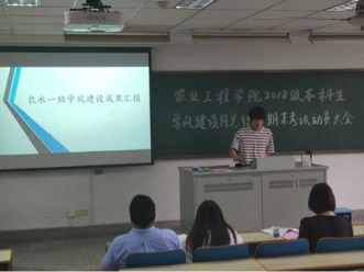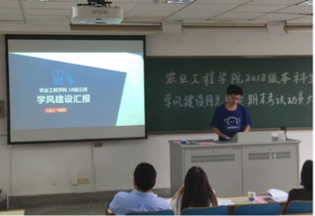 会议首先由各班班委汇报班级优良学风班和学风建设月创建情况。农水一班以特色“学习小组”为切入点,详细阐述了互帮互助、相互监督的朋辈学习模式,也就当下班级同学学习动力不足、班委推行学风创建方案完成度不高等问题进行了反思总结;农水二班交流分享了“21天打卡”、课堂考勤、学习资料共享等学风建设举措,提出要进一步提升课堂抬头率,增加与老师交流,并拟定学霸笔记、抽查作业改错、定期班会、宿舍监督等学风改进措施;三班介绍了通过特色宿舍创建、宿舍卫生公示监督等措施加强舍风建设,以优秀舍风带动优良学风的有效经验,并通过成立学习互助小组、模拟考场、好文好书分享等措施进一步加强学风建设成效,着重发挥班委的模范带头作用。
