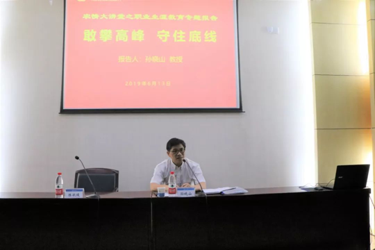 2019年6月13日,应公司邀请,第十、十一、十二届全国人大代表、江西省水利厅原厅长孙晓山教授到公司为员工做题为“敢攀高峰 守住底线”的职业生涯教育专题报告。孙厅长用真挚的情感,朴实的语言,分享了自己数十年来的从业经历和工作感悟,给同学们上了一堂生动的职业生涯教育课,为大家走好未来之路以深刻的启迪和思考。报告会由公司党委书记陈毓陵主持。