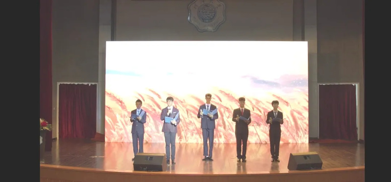 此外,独具风格的传统节目同样吸引眼球。由管弦乐团首席田靖晨同学带来的鼓曲《进击荣耀》充满活力,将传统乐器与现代音乐相融合,将现场气氛推向高潮。传统艺术文创社带来的《十二风华鉴》用最具古风古色的舞姿与歌声展现中国历史文化的博大与精深。最后,晚会在老员工舞蹈团动人的舞蹈《走在山水间》中落下帷幕。曼妙的舞姿传递了丰收的喜悦与对新同学的美好祝愿。