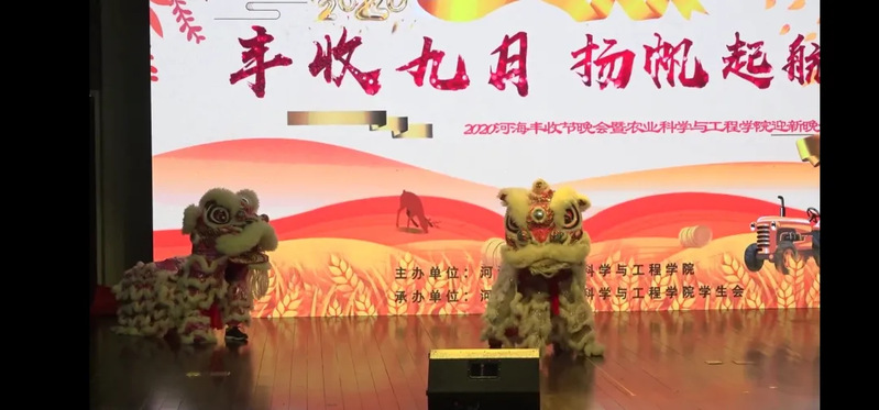 随着“河海雄狮贺丰收”欢快音乐的响起,来自校舞狮协会的各位同学用生动的舞狮表演正式拉开了活动的序幕。朗诵节目《丰收礼赞》为大家生动展示了中国农业的发展历程,分享丰收的成果与喜悦。由民族乐团团长韦琦所演奏的竹笛曲目《春到湘江》婉转动听,用传统音乐的方式呈现出了一幅优美的山水画卷。来自加纳的职工团体Hohai Jama Group用最具风情的传统歌舞迎接丰收节的到来,同时也为2020级的新同学献上了友好的祝福。