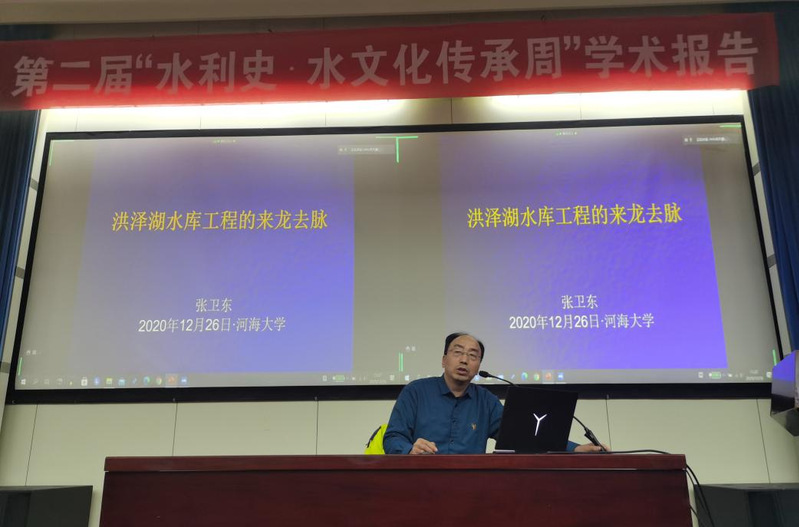 张卫东老师为我们带来了以《洪泽湖水库工程的来龙去脉》为题的精彩报告。洪泽湖是黄河的子孙,是黄河与淮河共同孕育的“结晶”。洪泽湖的历史价值主要体现在清口枢纽,是江苏经济的发展的重要基础。张老师从历史、世界地位、运用技术等多个方面进行总结,将洪泽湖水库工程形象地呈现在大家面前,尽显洪泽湖水库工程的卓越和辉煌。