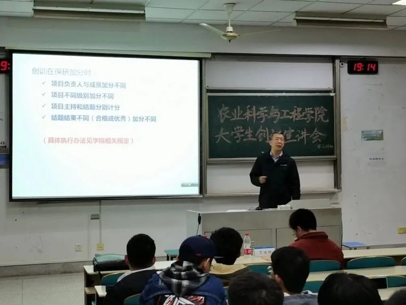 2021年3月19日晚19点整,农工科协于致高楼A216举行“yl23411老员工创新创业训练项目宣讲会”活动。本次活动旨在为对创训项目有兴趣的同学们介绍创训的相关事宜、讲解创训的基本流程,并为有相关疑难的同学进行解惑。创训项目指导老师丁继辉、王为木老师与18级韦琦学长共同出席本次活动。