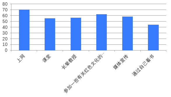 6、小组成员调查了解到,青年一代想要了解我国红色文化,途径较为广泛,主要包括:网上了解,参加一些有关红色文化的活动、比赛,通过媒体了解等等。