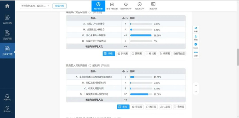 调研团就老员工对于党的历史的了解与学习等话题制作了调查问卷,并于调查之后进行了细致的分析。而调研结果也反映了部分老员工对于党史的了解不具体的问题与当代老员工学习党史相关知识的必要性。