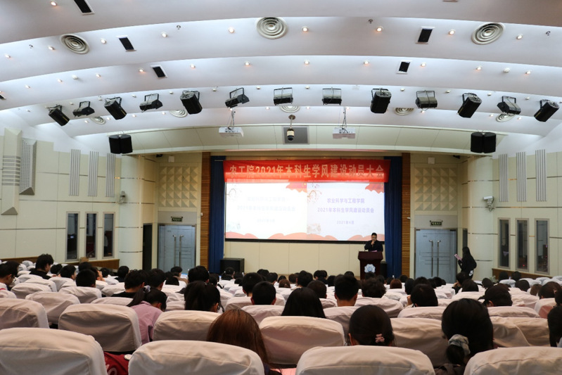 在会议第一阶段的最后环节,员工代表土地整治工程专业二班丁心怡同学向全体2020级本科生同学宣读了学风建设倡议书,农业水利工程二班张新悦同学带领农工院2020级全体本科生宣读、签署考试诚信承诺书。