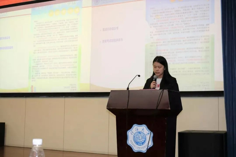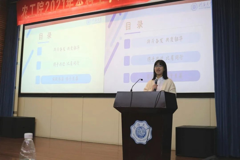学风建设的各项举措关键要靠各个班集体去推进落实。随后,2020级农水二班员工代表祝嘉宁同学、农水四班员工代表陈可悦同学分别上台对本班优良学风班创建方案进行介绍与展示交流,他们的分享中既有切实可行的推进举措,更有进一步加强班级学风建设的决心。