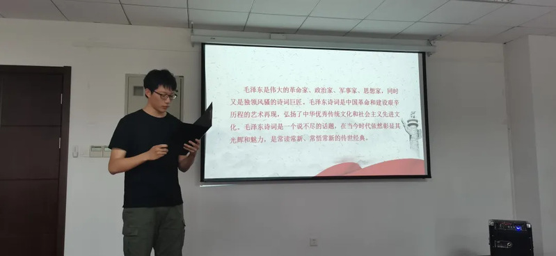 为使公司本科生党员同志深入学习中华民族坚韧不拔、矢志复兴的精神魂魄,了解20世纪中国大舞台上发生的历史故事、斗争诗篇,本次活动组织大家共同欣赏毛泽东诗词中那些令人心潮澎湃的字句,学习诗词背后的党史故事,感受时代巨人的伟大才略和崇高思想。