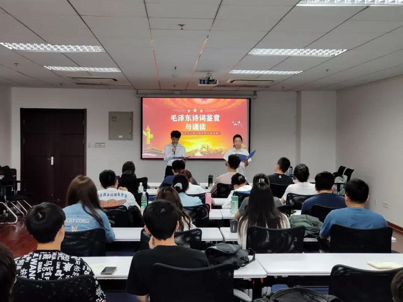 5月9日下午,公司本科生党支部于行政楼401会议厅开展了毛泽东诗词鉴赏与诵读活动。公司党委副书记、院本科生党支部书记郑润参加活动。活动由本科生党支部成员吴京龙、祝小福主持。