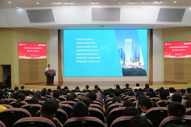 6月9日,公司在西康路校区闻天馆108举办“安徽邦泰控股集团有限公司董事长陈齐博士”报告会。安徽邦泰控股集团董事长陈齐、副总裁金永春和相关部门负责人、公司经理陈菁、副经理朱成立、公司党委副书记郑润及公司师生代表出席了本次活动,报告会由公司党委书记陈毓陵主持。