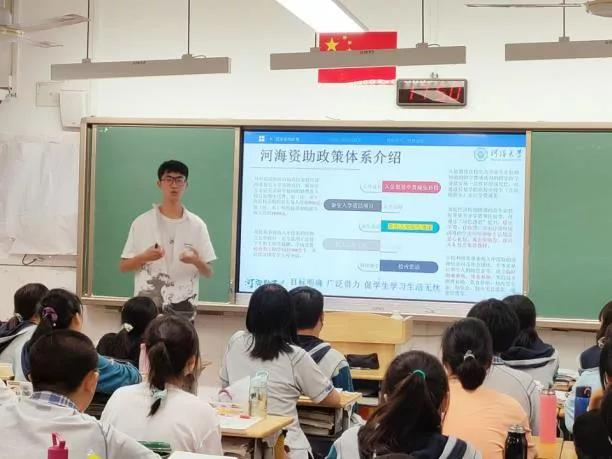 6月25日下午团队五人到达了南京市十二中,宣讲时,团队成员依次上台进行自我介绍后,刘国正、王琨同学布置宣讲会场,杜婧同学向所有在场的同学分发互动交流的信纸,宋昕宁和芦治宇同学分别为同学们讲解了国家资助政策以及yl23411的资助政策。