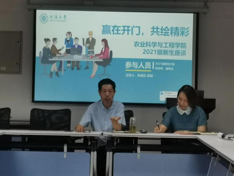 10月3日,以“赢在开门,共绘精彩”为主题召开了2021级新生座谈会。公司朱成立副经理、郑润副书记、21级辅导员、班导师以及18位员工代表参加了此次座谈会,会议由辅导员薛璟老师主持。