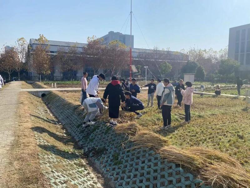 在几位学长的带领下,农水与土治专业的同学们在种植水稻的田上开启了收水稻的劳动。金黄色的稻田饱含丰收的喜悦,大家拿到镰刀就全身心投入到收割中,每个人都热情高涨,积极参加,出力干活,很快就割完所有稻子。接着大家一起把水稻搬运到加工场地,圆满完成收水稻任务。