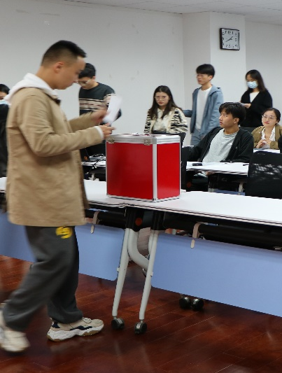 随后由付责同学宣读《yl23411第一次研究生代表大会选举办法》及选举工作小组名单,并由全体代表审议通过。最后,四位候选人轮番上场,进行了自我介绍,结合自身能力,表达为同学服务的意愿。
