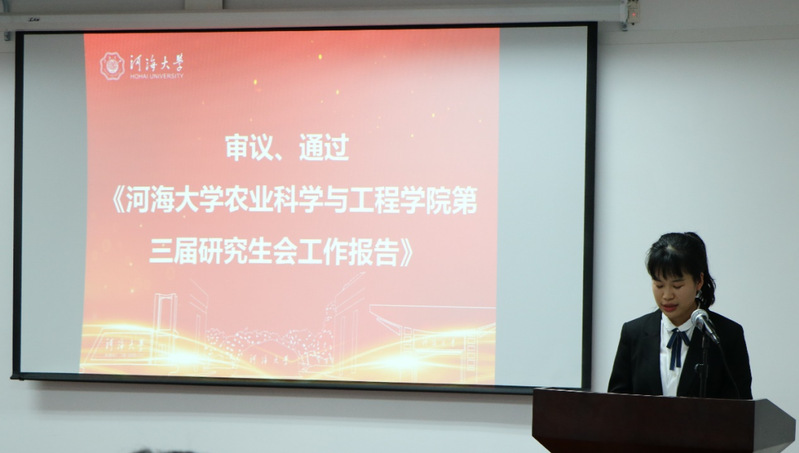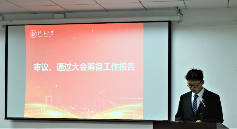 接着由秘书部部长祁苏婷同学做公司第三届研究生会工作报告,全体代表审议通过。
