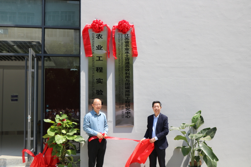 仪式上,孟新书记和陈菁经理共同为“农业工程实验中心”揭牌,周语明董事长助理和朱成立书记共同为“江苏省农业水土资源高效利用与固碳减排工程研究中心”揭牌。