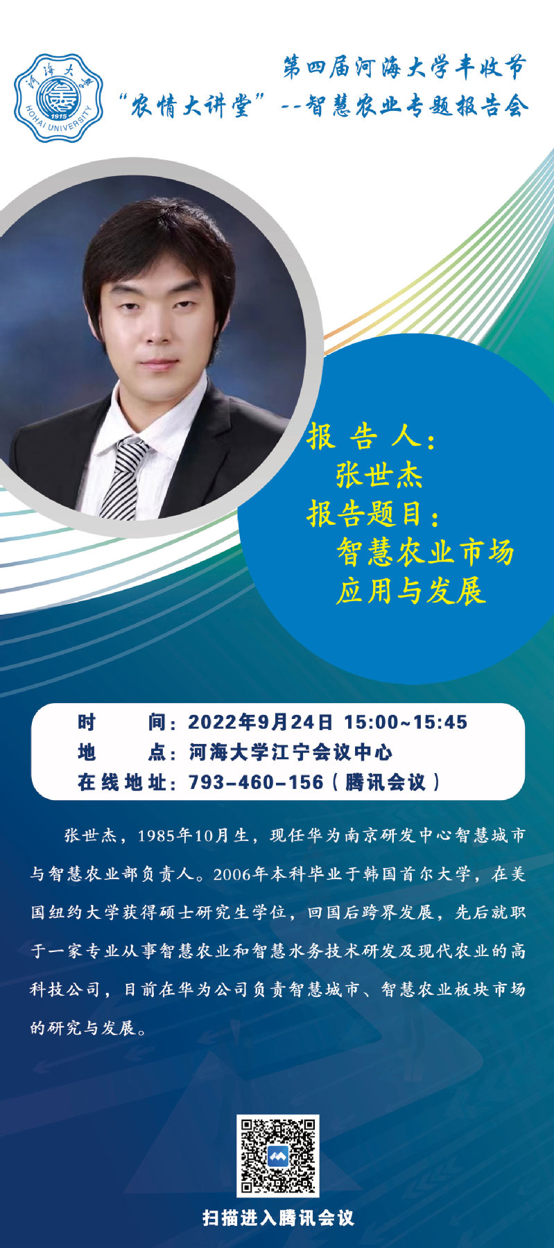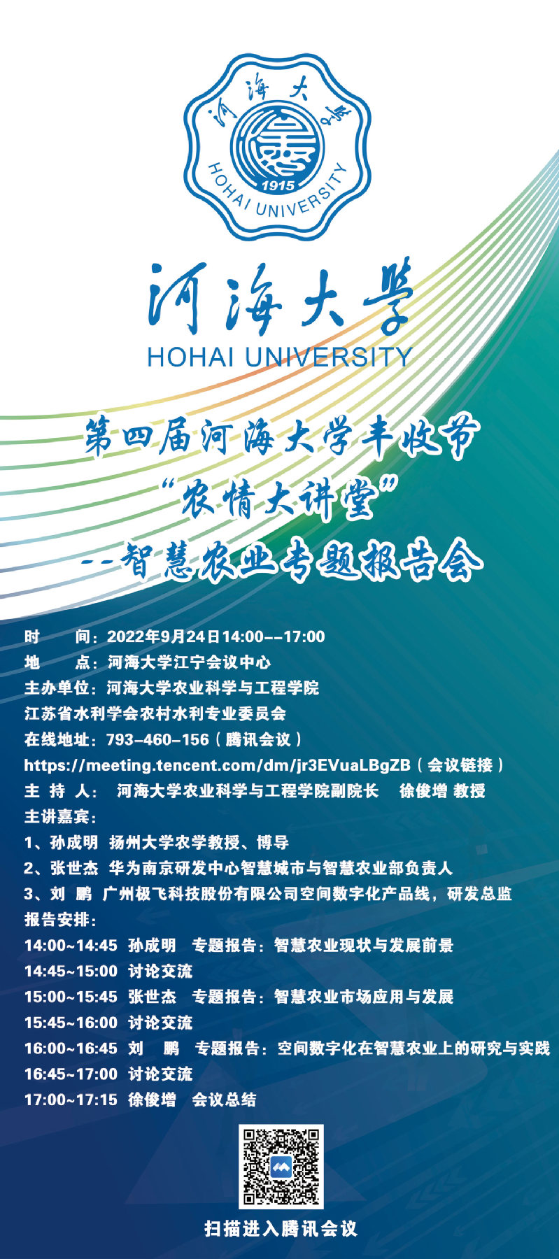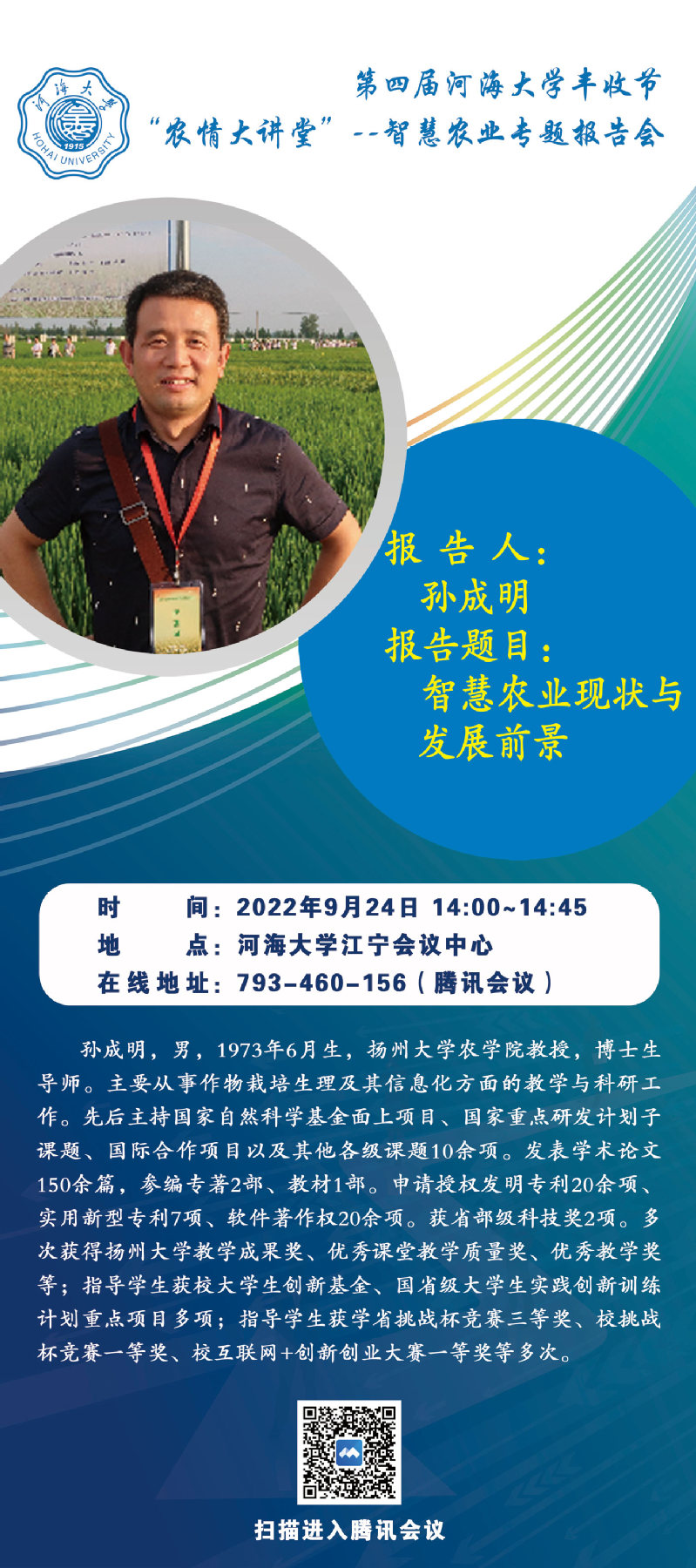 第四届yl23411丰收节“农情大讲堂” --智慧农业专题报告会(海报)
