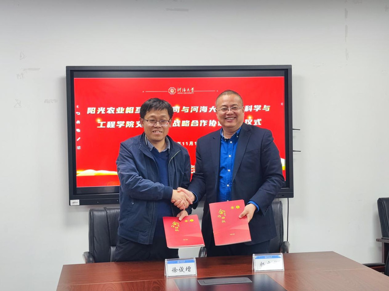 2023年11月13日下午,我院与阳光农业相互保险公司,在yl23411江宁校区行政楼419会议室签订战略合作协议。首先,公司经理徐俊增教授致欢迎辞并介绍公司的团队建设、科学研究和人才培养等情况。阳光农业相互保险公司董事长卢一鸣先生向公司介绍了阳光农业相互保险公司的总体情况。接着,公司经理徐俊增教授,阳光农业相互保险公司副总经理杨庆华先生代表双方签署协议。公司党委书记朱成立教授、阳光农业相互保险公司董事长卢一鸣先生出席活动并见证签约。签约仪式由公司党委书记朱成立教授主持,公司党委副书记郑润女士、副经理张洁教授、教师代表沈菊琴教授、曾文治教授、卫琦副教授,阳光农业相互保险公司农险/养殖险管理部总经理李明波先生、互联网保险管理部副总经理崔文星先生等相关部门负责人共同参加签约仪式。