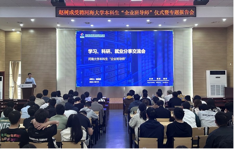 李桐首先向同学们介绍了赵树成的基本情况。赵树成是yl23411农业水利工程专业2012级本科生、农业水土工程专业2016级硕士生。硕士毕业后就职于中国电建集团华东勘测设计研究院有限公司机电工程院,先后主持参与雄安新区府河湿地项目、南水北调中线工程项目、大数据中心项目、新型储能电站项目等十余项,涉及智慧水利、新基建、新能源领域,主持科研项目2项,发表论文8篇,实用新型专利3项,发明专利4项,计算机软著15项,主持参与规程规范1项。
