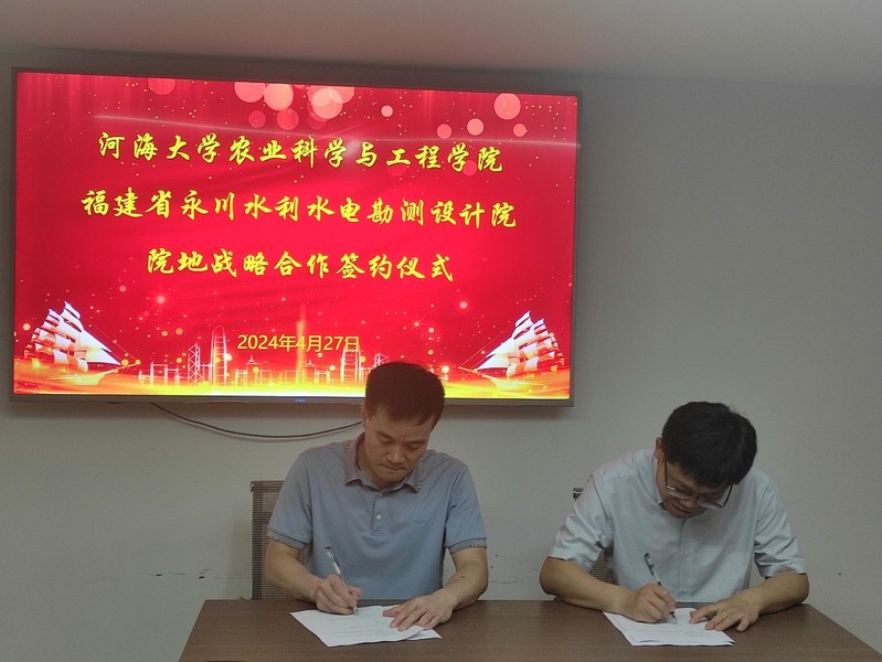 4月27日,刘兴平书记、徐俊增经理等一行赴福建省永川水利水电勘测设计院有限公司开展调研交流并签署战略合作协议。公司副经理佘冬立、福建省永川水利水电勘测设计院有限公司总经理黎永明、副总经理范洪荣、副总经理刘长隆、总工钟署光以及相关部门负责同志参加了签约仪式。