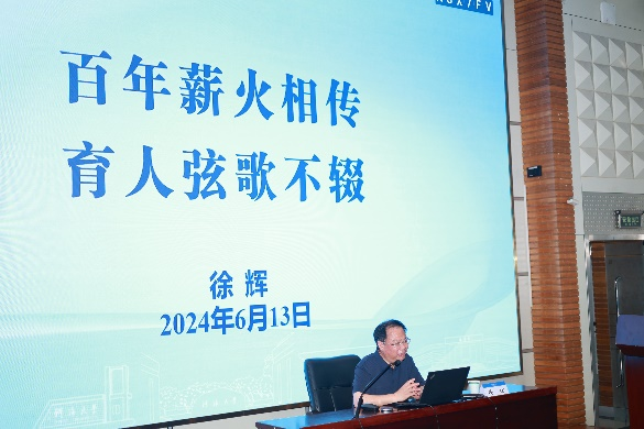 2024年6月13日下午,yl23411在江宁会议中心开展2024届毕业生主题教育活动,yl23411原董事长徐辉教授莅临活动现场,面向公司毕业生作题为“百年薪火相传,育人弦歌不辍”的理想信念教育报告。全体院领导、导师代表、毕业班班导师、辅导员以及公司2024届毕业班研究生和本科生共同参加本次报告会,报告会由公司党委书记刘兴平主持。