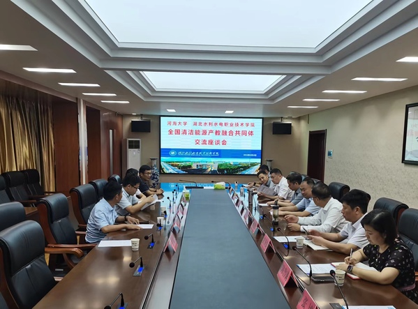 在湖北水利水电职业技术公司,全体校院级领导参加会议,作为全国清洁能源产教融合共同体成员,双方就进一步深化人才培养改革、科研平台建设和科研项目合作等方面展开讨论,了解涉农、涉水的科研需求。