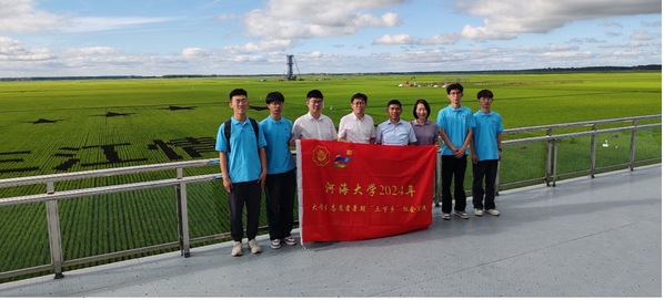 在北大荒集团建三江分公司数字指挥中心,实践团队师生观看了全境模拟水稻生长模型、数字水利综合管理平台的演示,利用大数据和人工智能,对农业生产管理进行高效调控,提高农业生产精准化管理水平,助力农业高效发展。此外,全环节无人化作业,北斗导航催生智慧农场,国产农机驰骋万顷良田,让大家深刻感受到数字赋能北大荒,万物智联大粮仓所带来的科技震撼!随后,实践团队师生来到习近平总书记参观考察过的“七星农场万亩大地号”, 红色醒目的“三江情 七星梦”嵌种在绿油油的万亩大型稻田中,给人带来一望无际,稻浪滚滚的强烈视觉冲击,让人禁不住豪情澎湃!